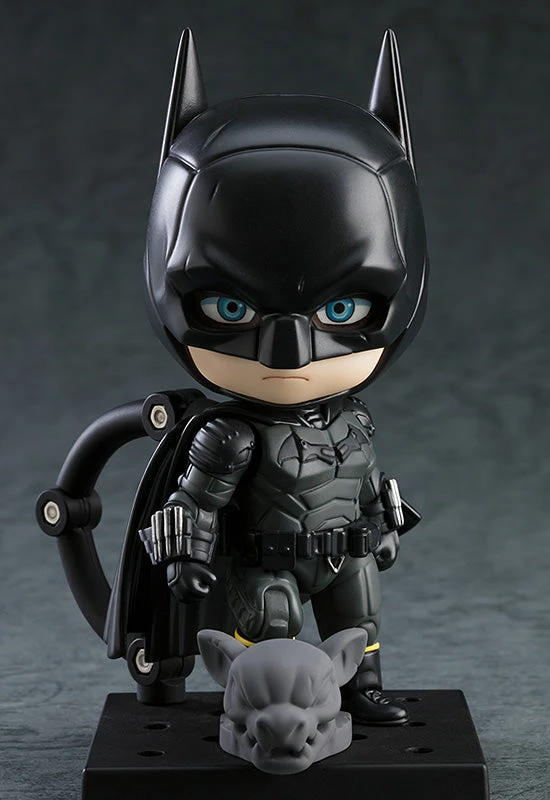 From the movie The Batman comes a fully articulated Nendoroid of Batman! He comes with two interchangeable face plates—a standard face and an angry face—along with white eye parts that can be used with his mask! Optional parts include a letter from the Riddler, a Batmobile miniature figure, an unmasked head part and a gargoyle part that can be attached to the Nendoroid’s base! Be sure to add him to your collection!